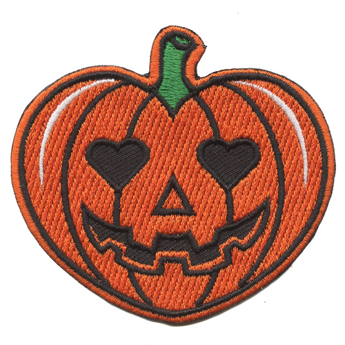 Pumpkin Heart Eyes Patch Halloween Spooky Cute Embroidered Iron On