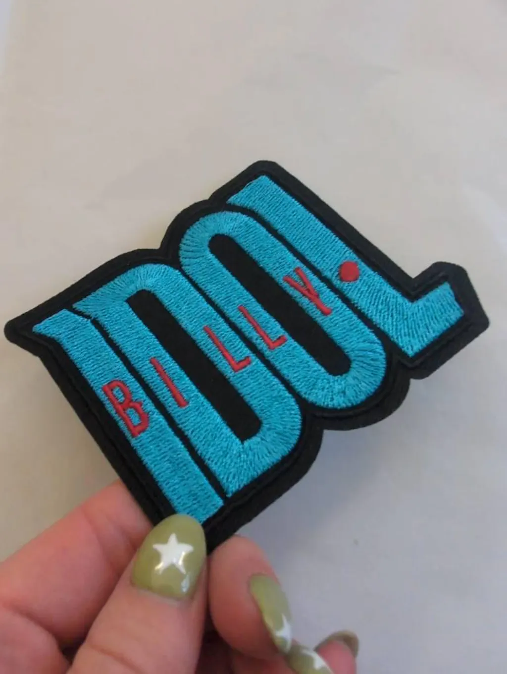 Introducing the Billy Idol Logo Patch - a must-have for any music fan! This embroidered iron on patch features the iconic punk rock icon, Billy Idol, known for his edgy and energetic performances. Show off your love for glam rock and add some flair to your style with this cool patch.